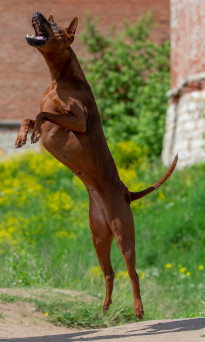 Robust und lebhaft, mit hervorragendem Sprungvermögen. Treuer Familienhund.