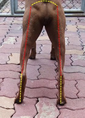 nach vorne gerichtet, wobei die Pfoten weder nach innen noch nach außen