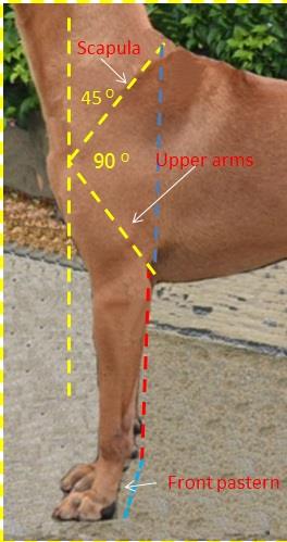Schulter : Schräg nach hinten gelagert.